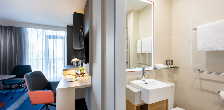 Extremely generous in size and well-appointed suites. They boast floor to ceiling windows allowing for plenty of natural sunlight and occupy the higher floors. These sun filled suites offer a spacious layout with a lounge and dining area and is well suited for singles or couples alike. The large open plan living area features a LED Smart TV, multiple USB hubs throughout, work space, in-room safe and minibar on demand. They are stylishly and have views over Melbourne and its surroundings.
